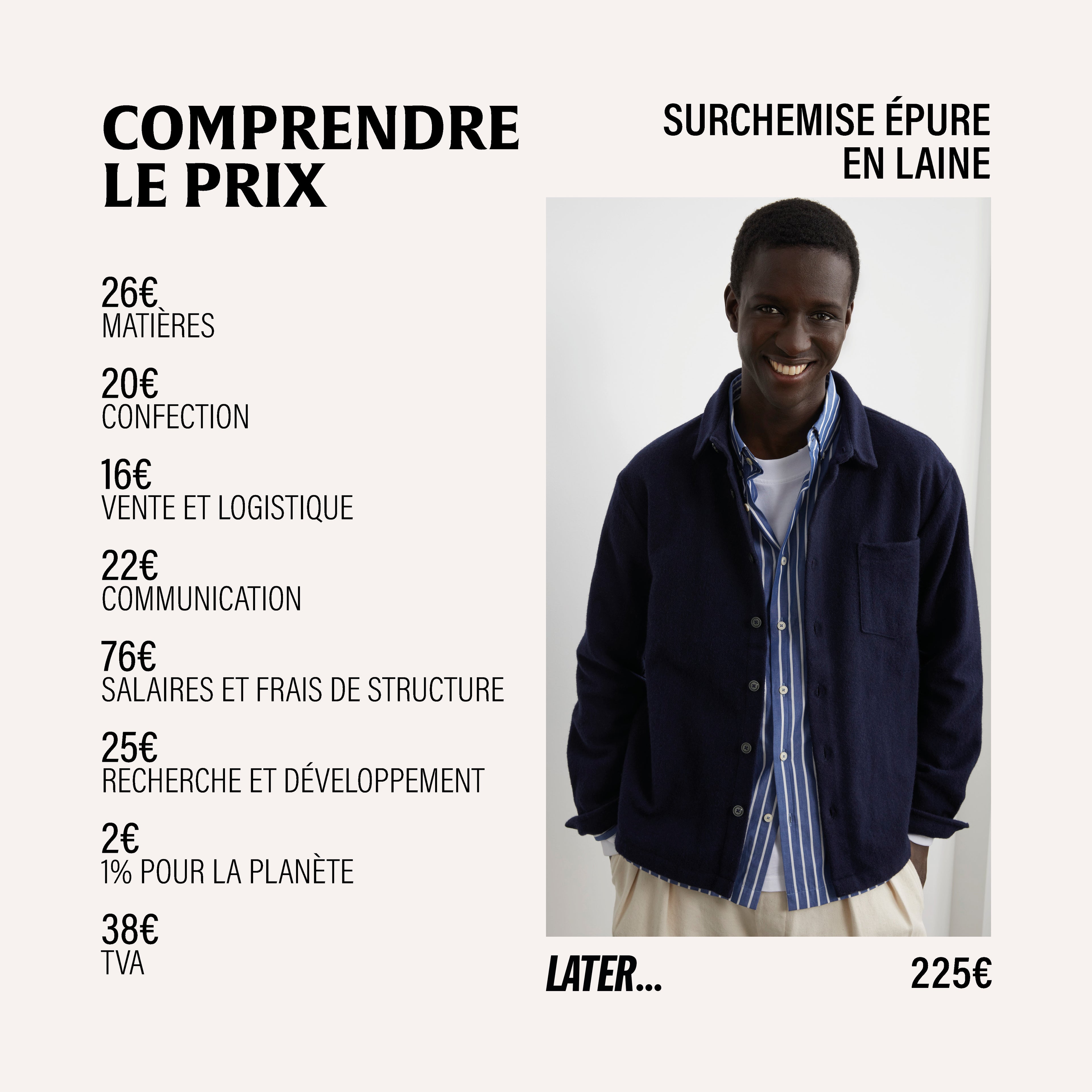 Seb On aime bien L’esprit de la marque et sa démarche. Concernant lz chemise, la matière, la couleur et la coupe au niveau du buste sont très chouettes. Les manches auraient gagné à être un peu plus longues.